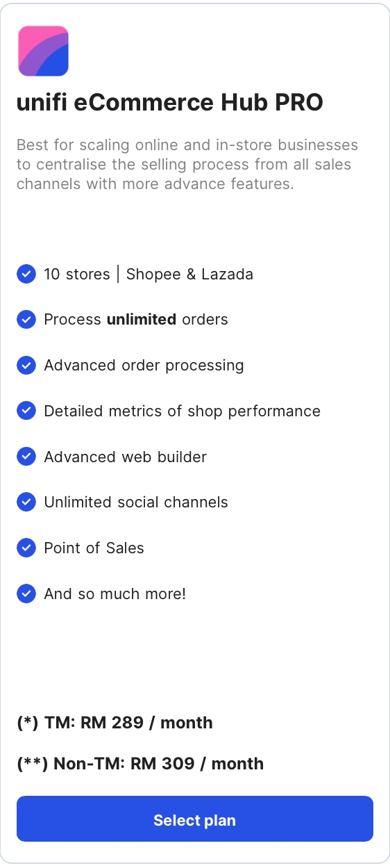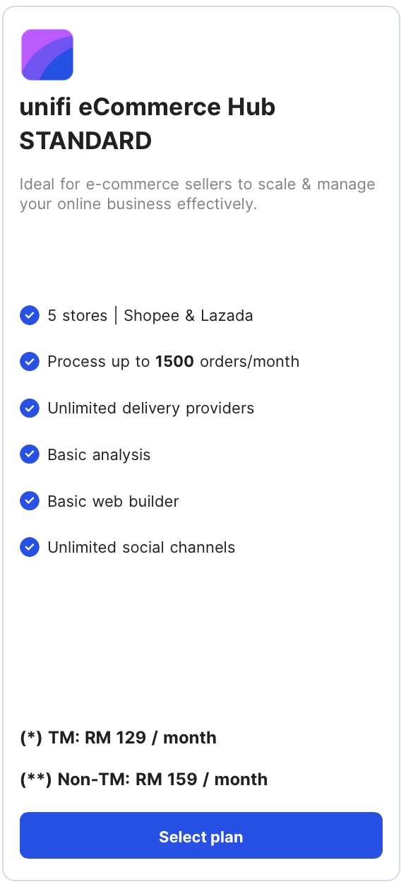 Tekan butang Select plan pada pelan yang anda inginkan.