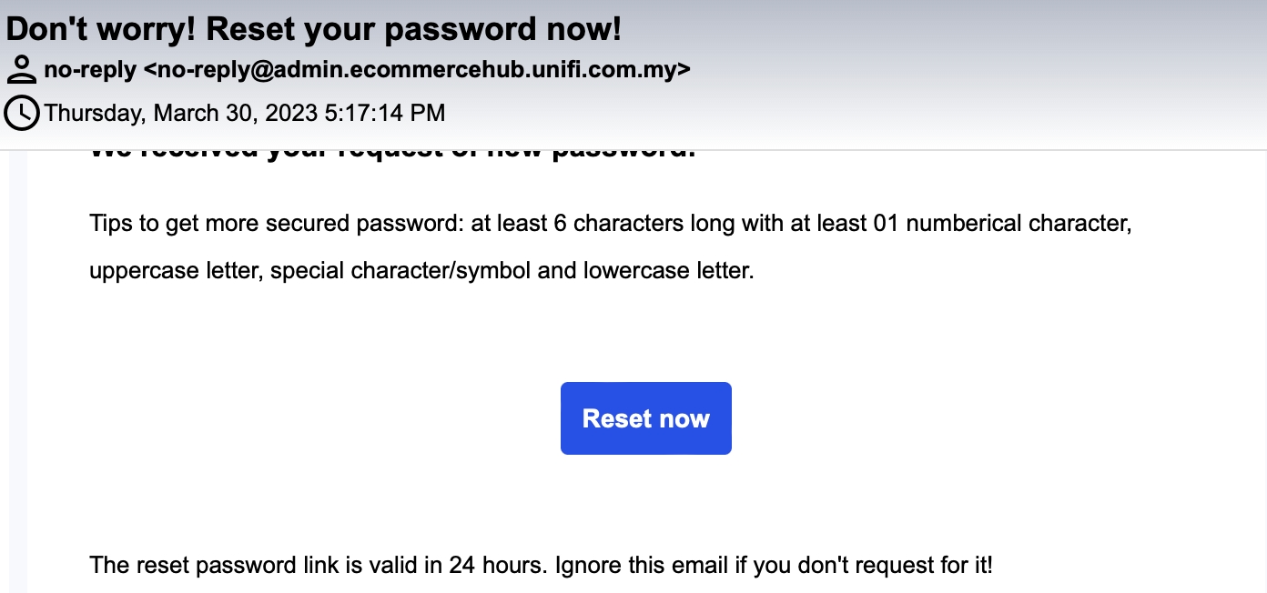Langkah 3: Pergi ke e-mel anda dan cari e-mel Reset Password