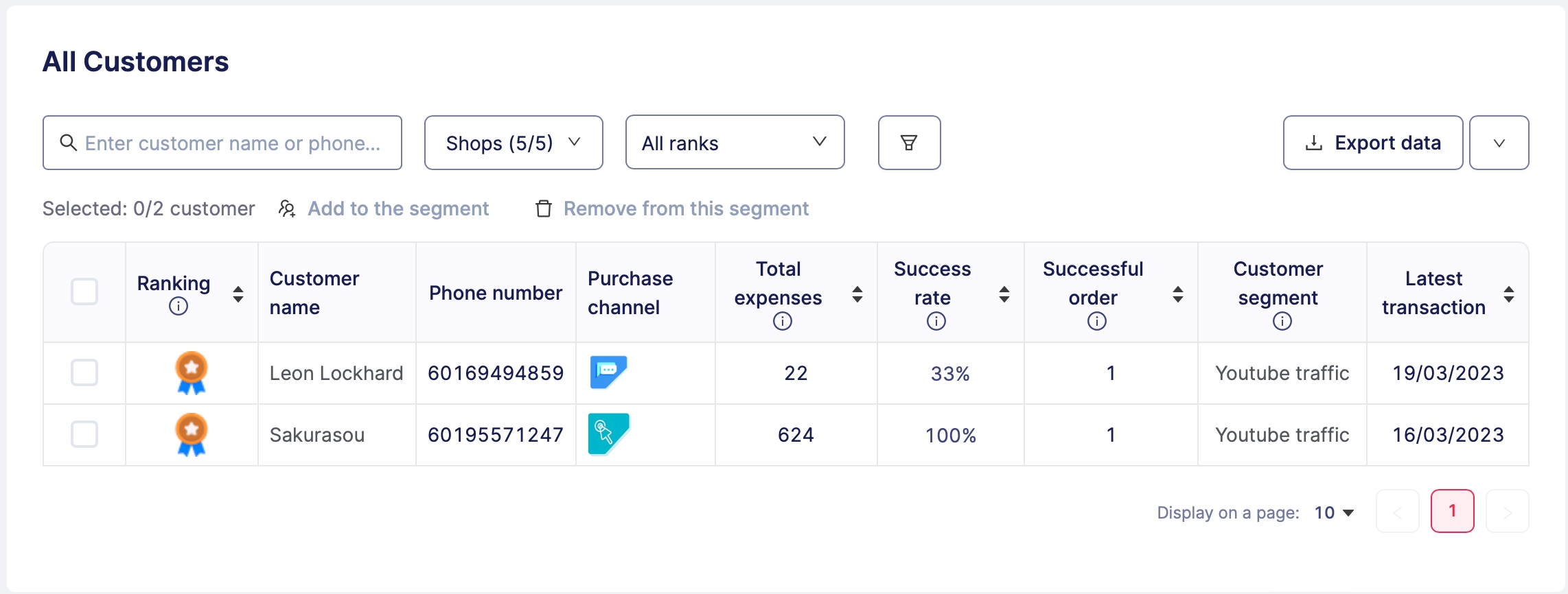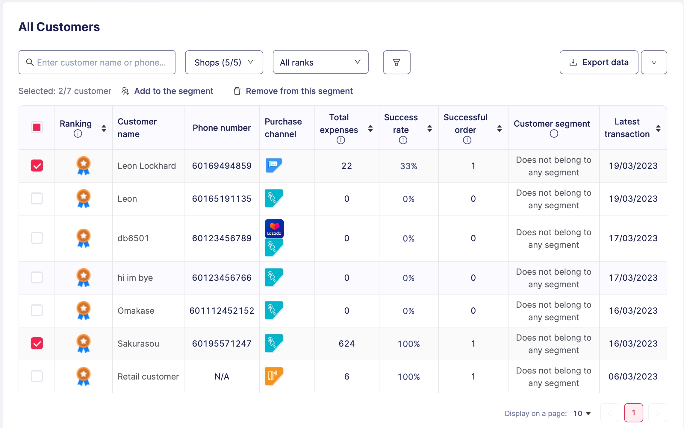 Dalam senarai All customer, anda perlu tandakan pada kotak bagi pelanggan yang anda ingin tambah pada segmen tertentu.