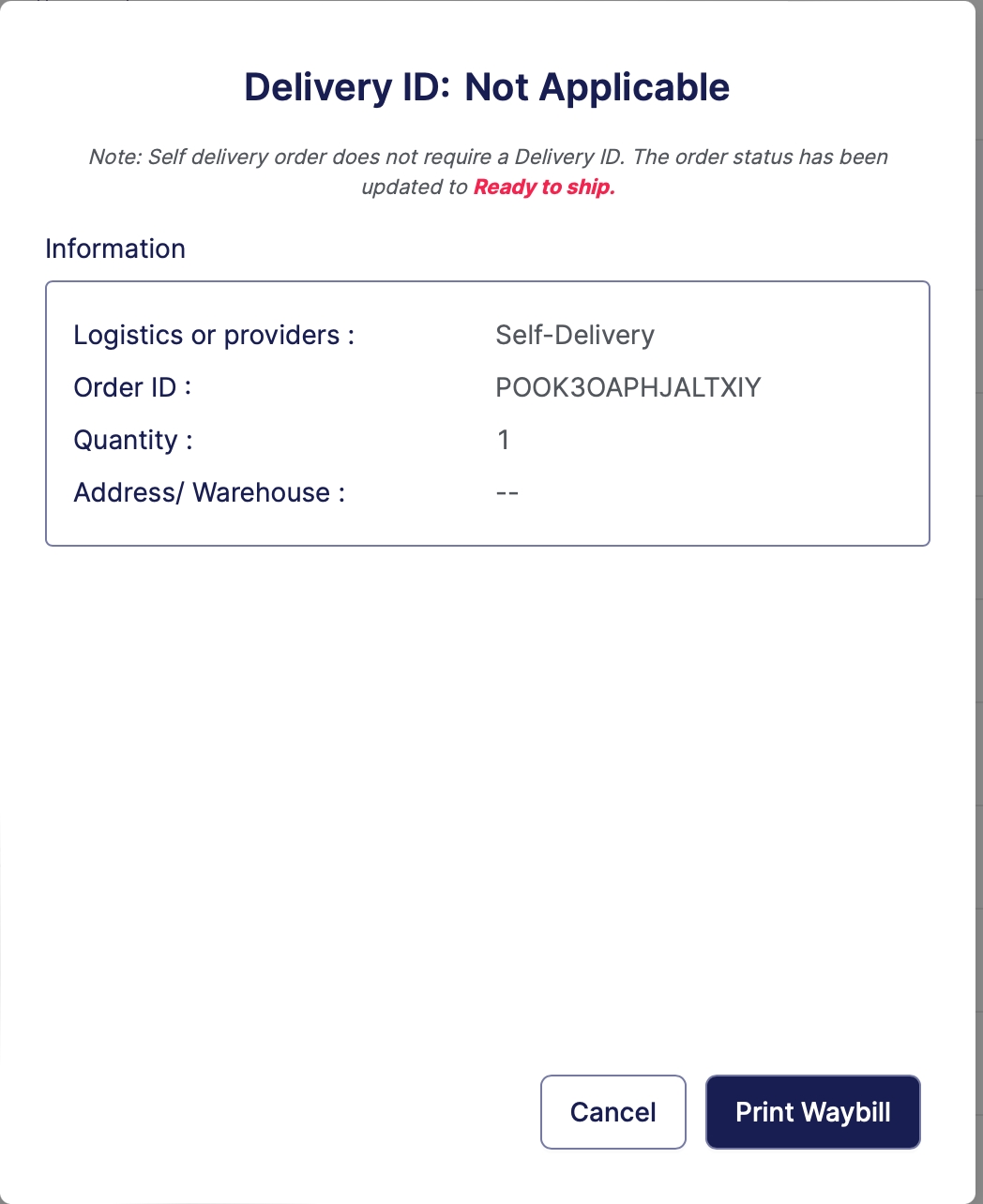 Kini, status penghantaran telah berubah kepada Ready to Ship, pesanan ini tidak boleh disahkan lagi.