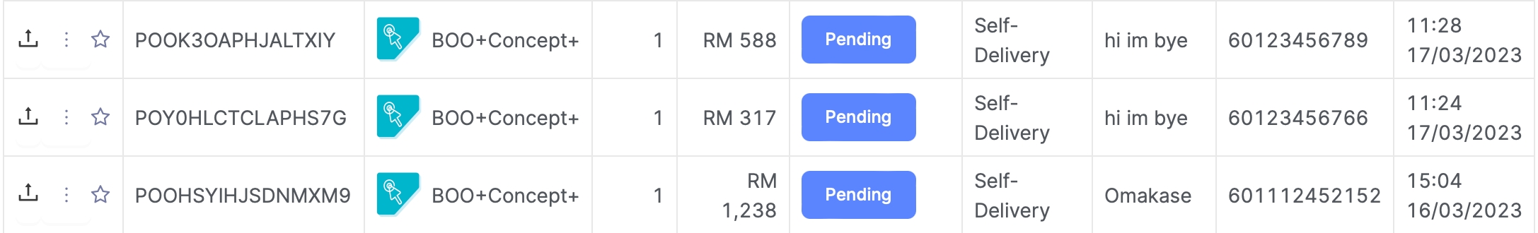 Tekan pada baris di senarai pesanan yang mengandungi pesanan yang anda mahu sahkan untuk pergi ke halaman butiran pesanan.
