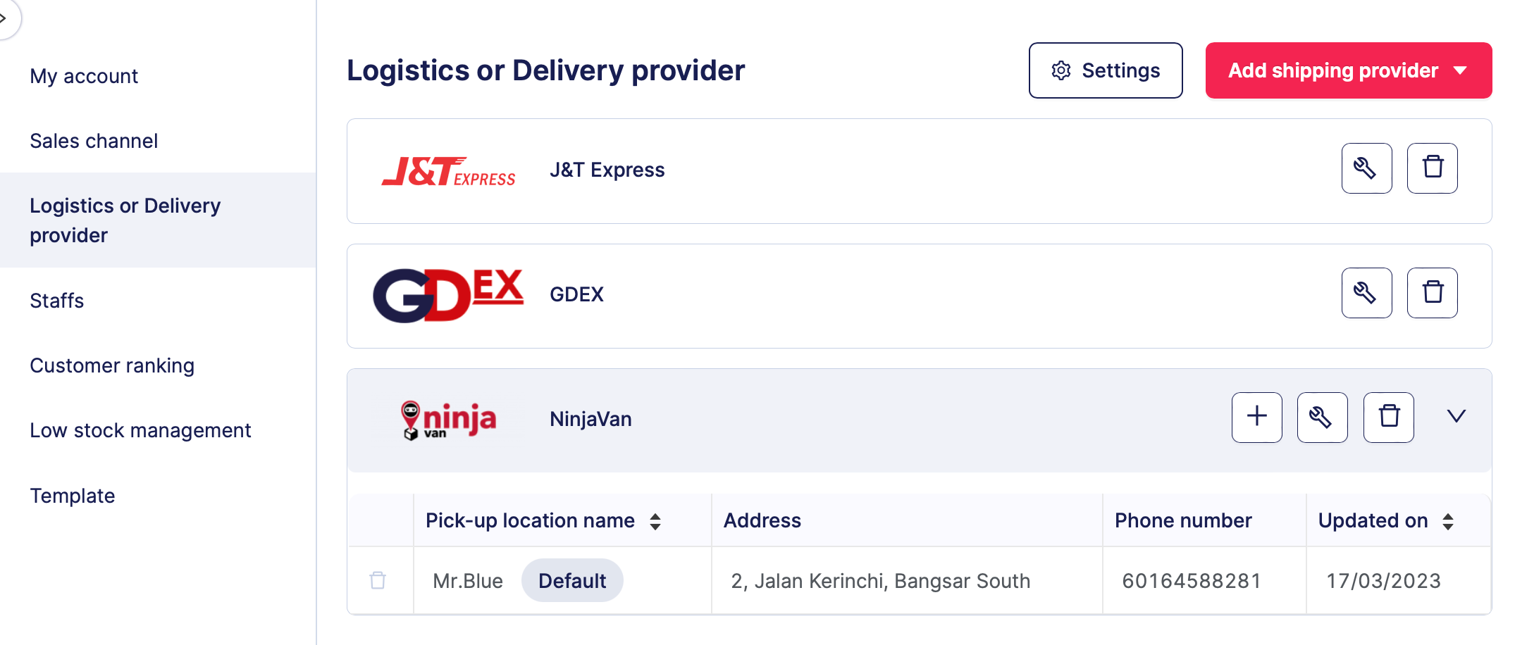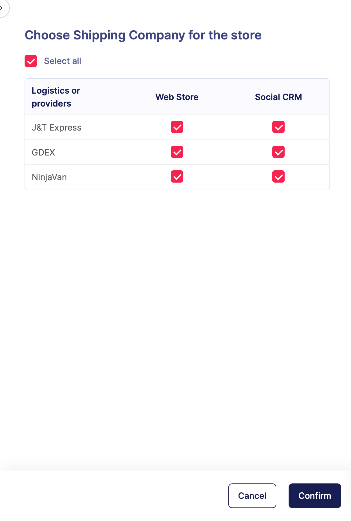 Langkah 3: Jadikan J&T Express tersedia untuk Web Store dan Social CRM