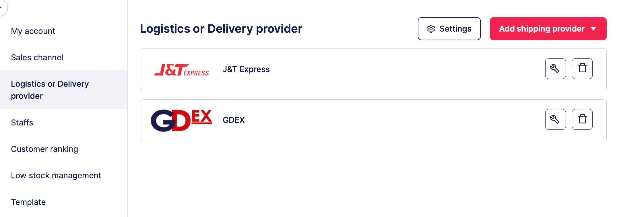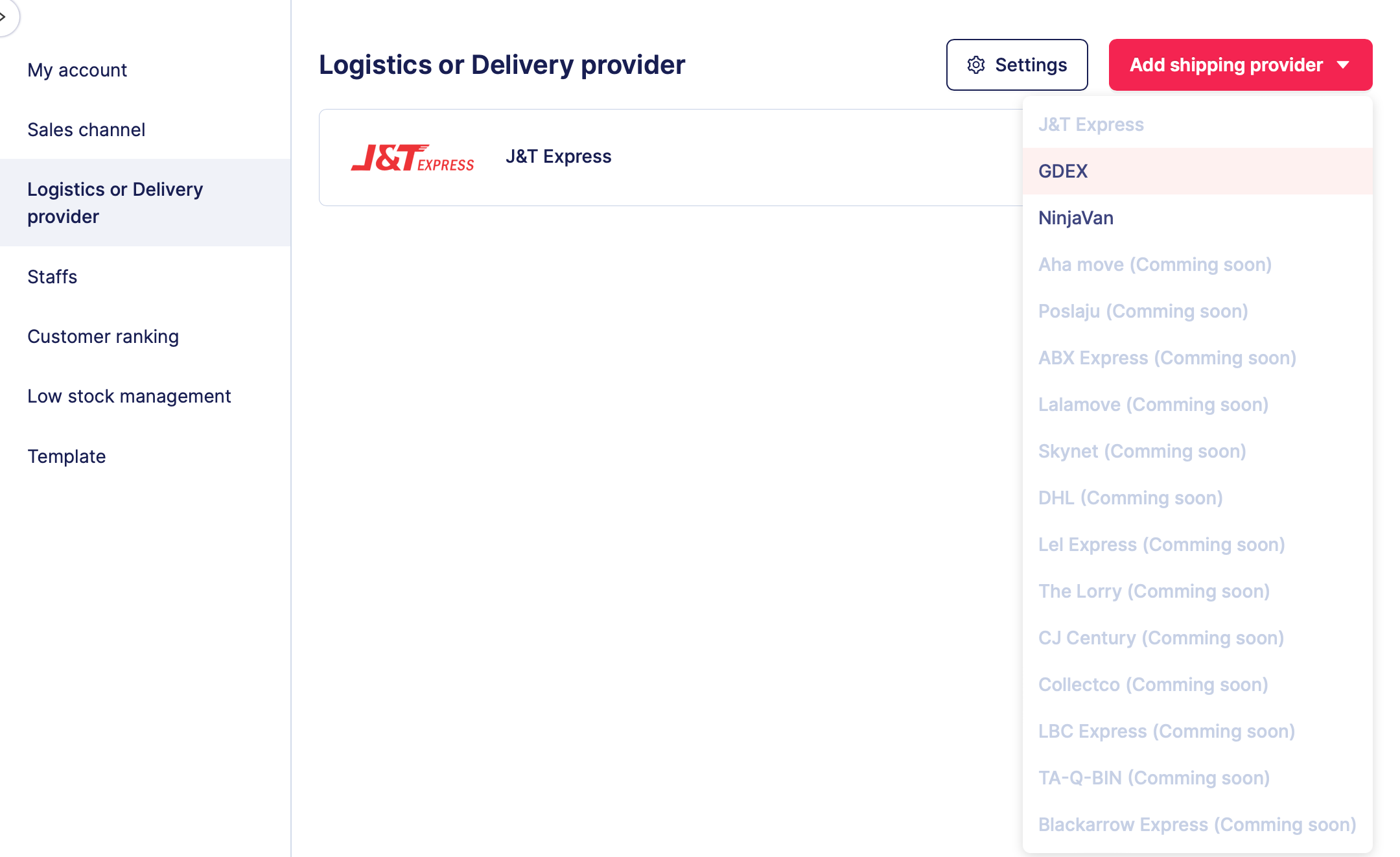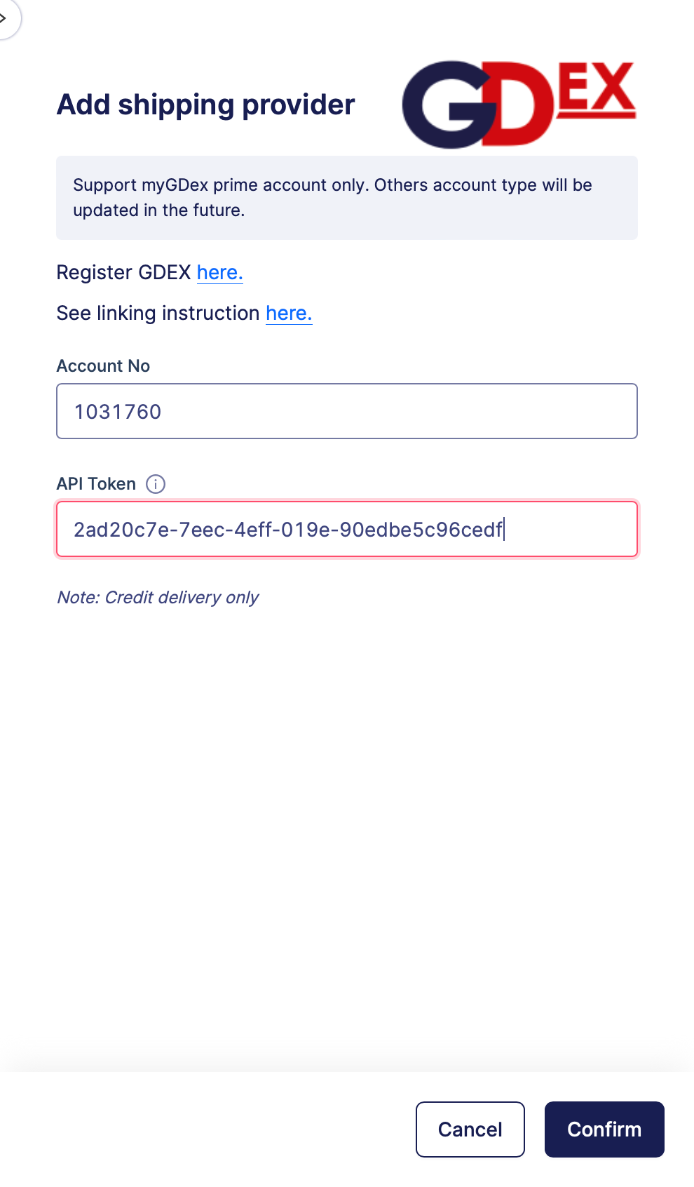 Langkah 1: Pilih GDEX untuk memulakan integrasi