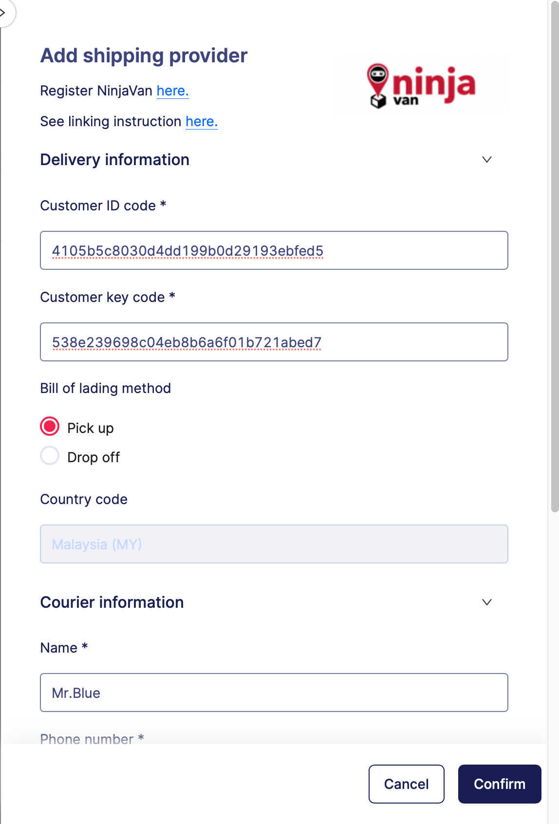 Integrasikan dengan NinjaVan