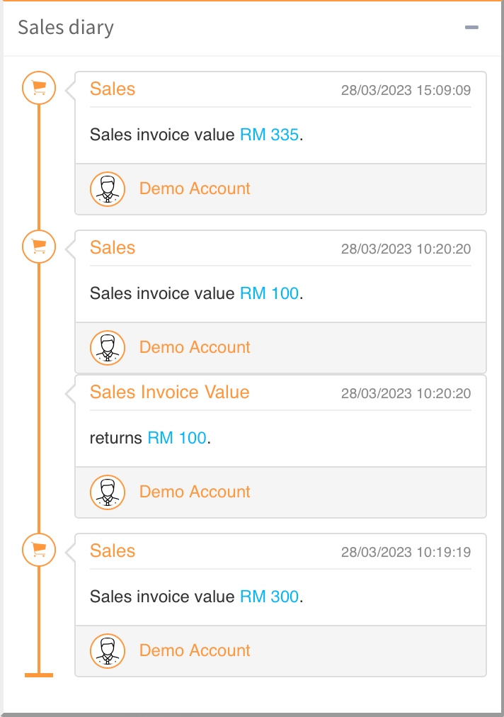 Diari jualan memberikan anda rekod kronologi pembelian yang dibuat oleh pelanggan. Maklumat tersebut termasuk: