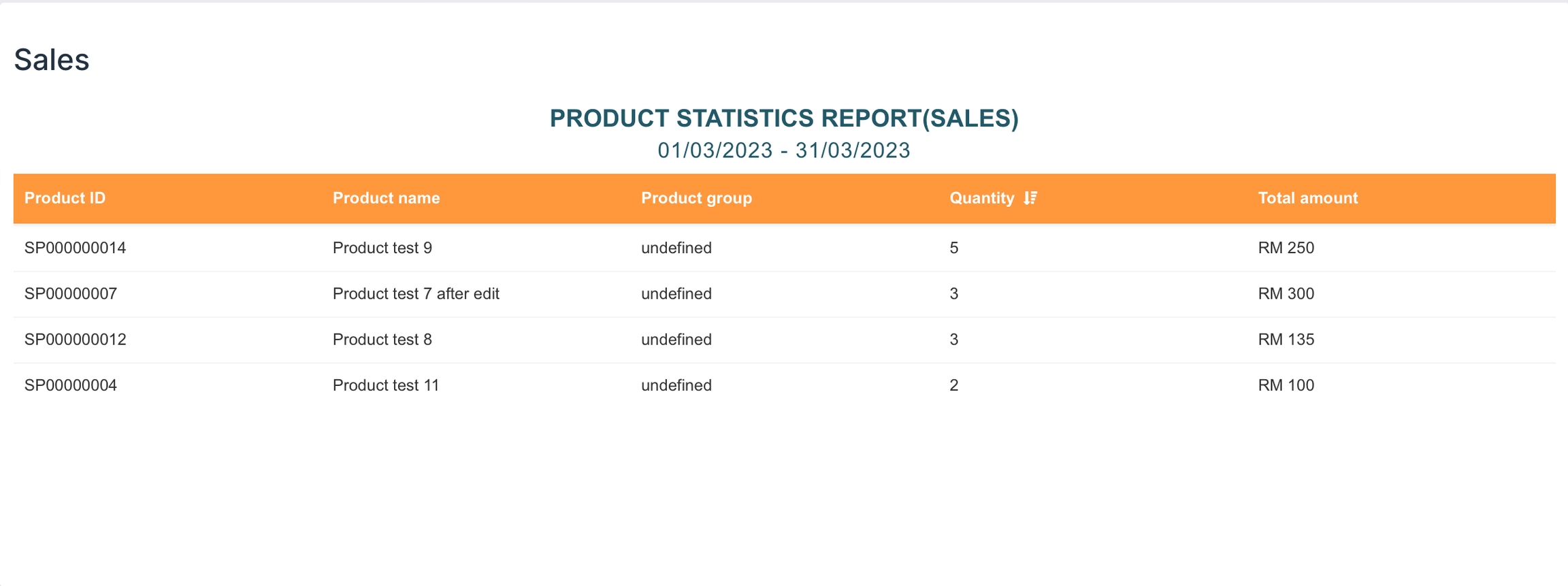 Bahagian ini membekalkan anda dengan statistik jualan produk yang termasuk jualan bulan semasa bagi semua produk yang telah menjana pendapatan.