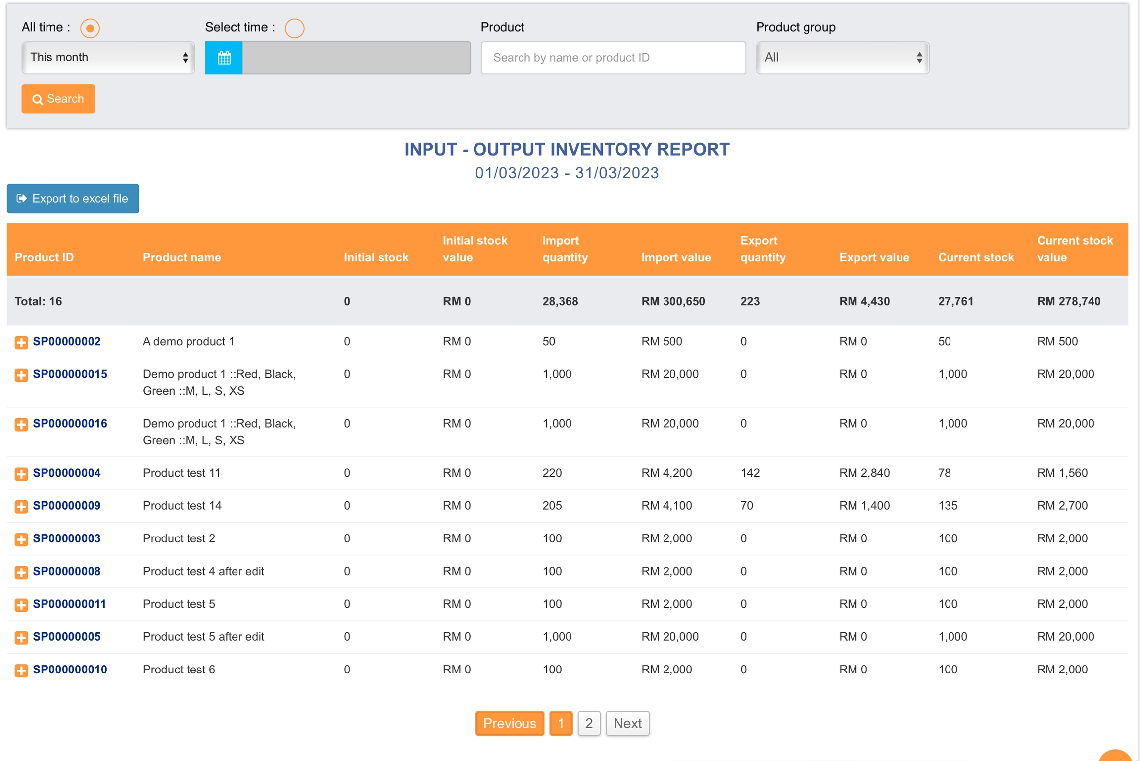 Laporan ini memberikan anda pencerahan tentang bagaimana nilai stok setiap produk berubah antara cawangan berdasarkan: