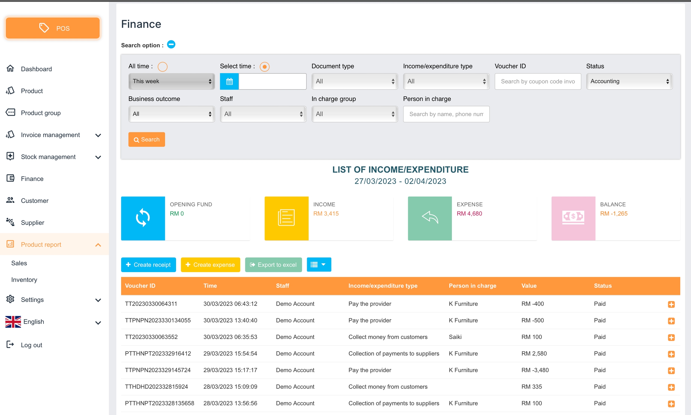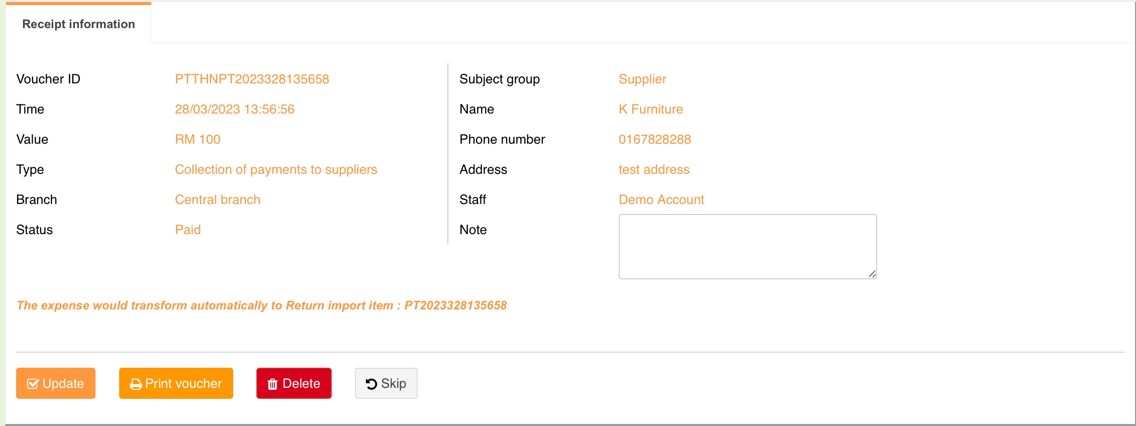 Anda boleh pilih baris yang mengandungi resit untuk memaparkan maklumat resit. Maklumat berikut termasuk:
