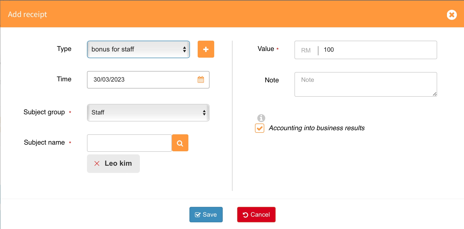 Tekan Save utnuk mengesahkan ciptaan resit.