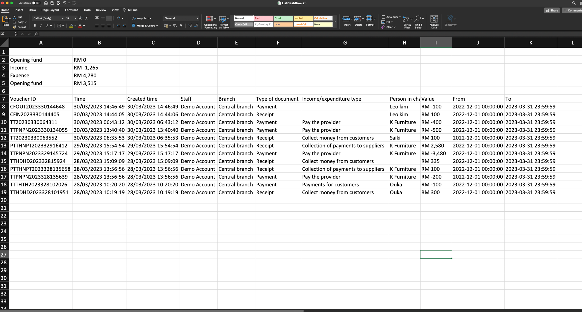 Eksport senarai invois jualan ke .xlsx