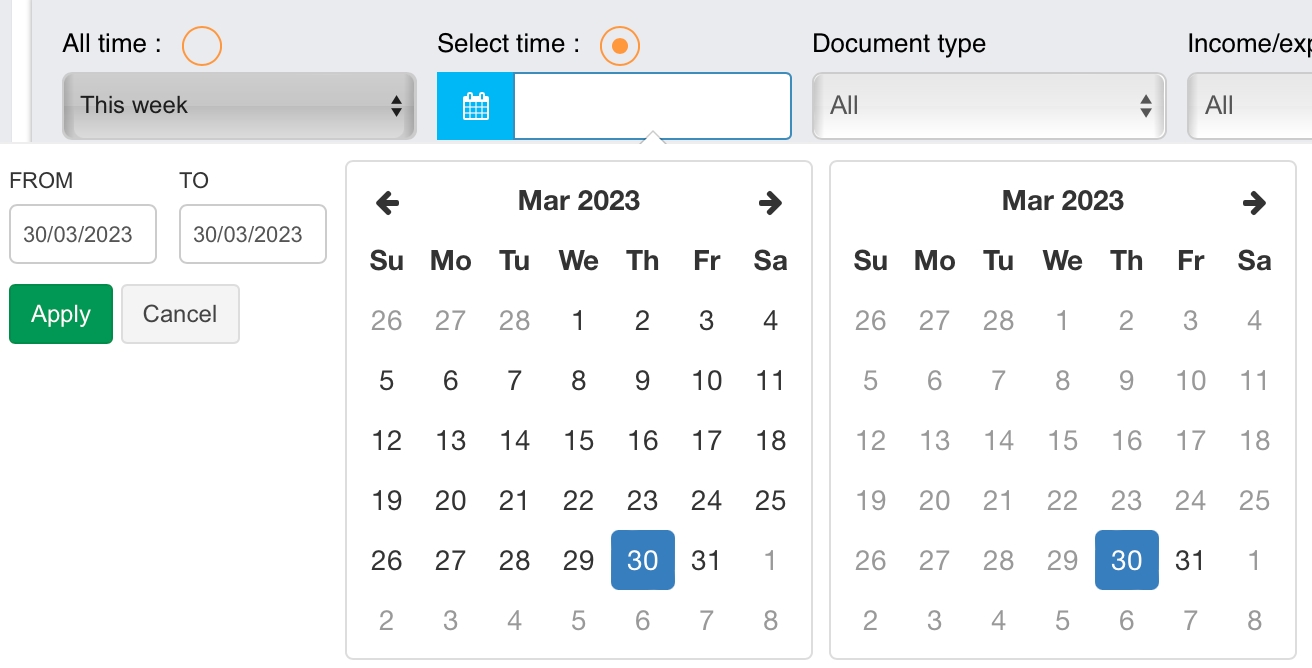 Jika tempoh yang ditetapkan tidak sesuai dengan pilihan anda, anda boleh memilih tempoh anda sendiri dari pemilih julat tarikh: