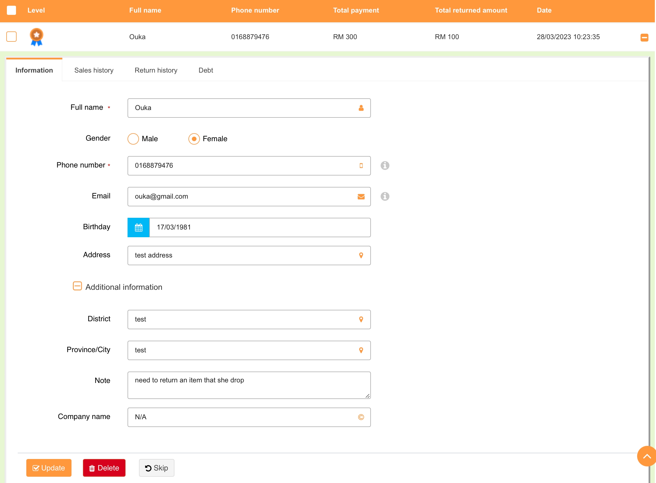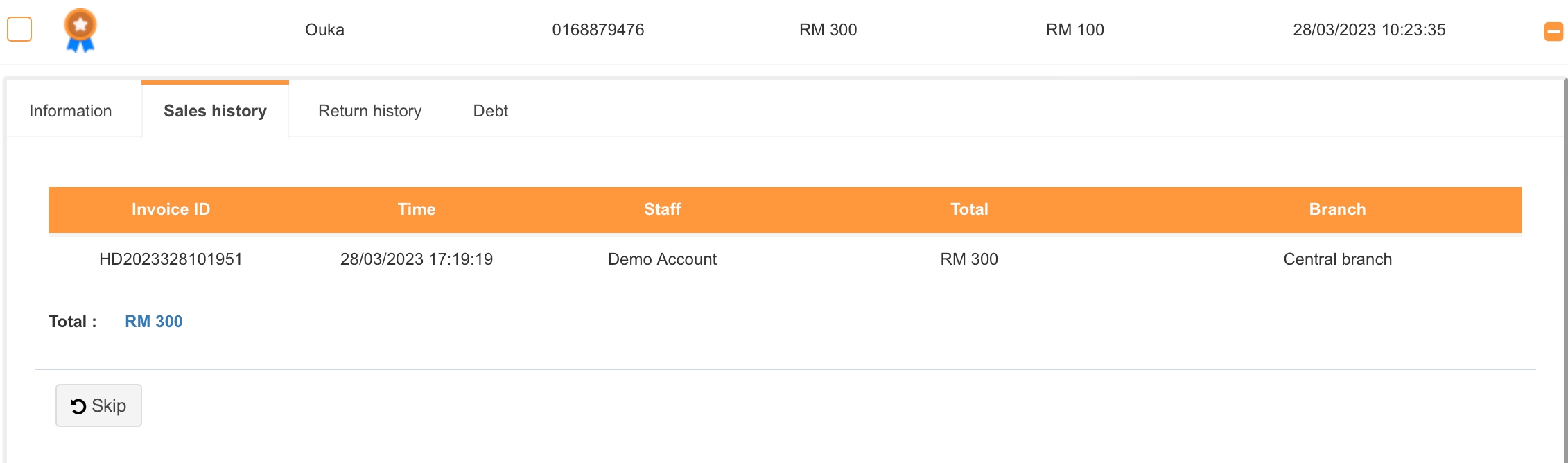 Tab maklumat akan memaparkan butir-butir keseluruhan pelanggan yang mengandungi: