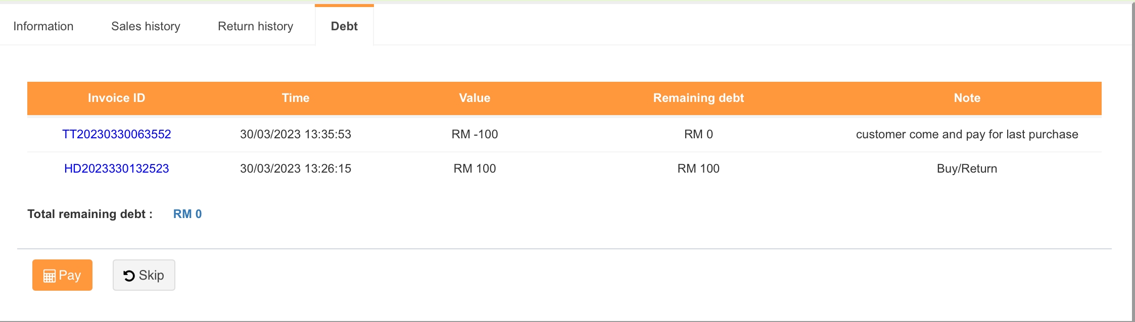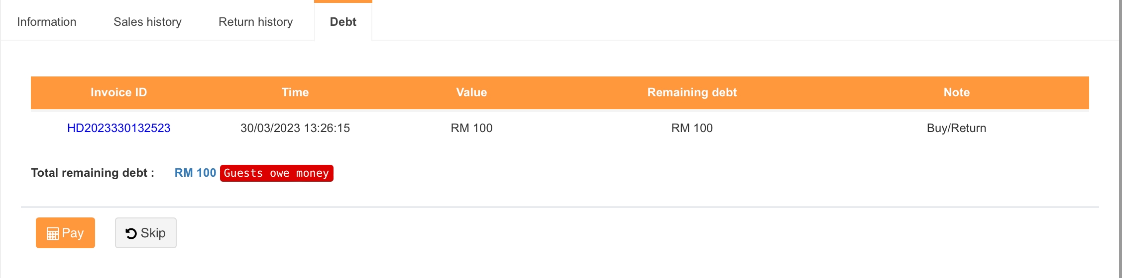 Pembayaran yang berjaya dibuat akan mengurangkan hutang pelanggan.