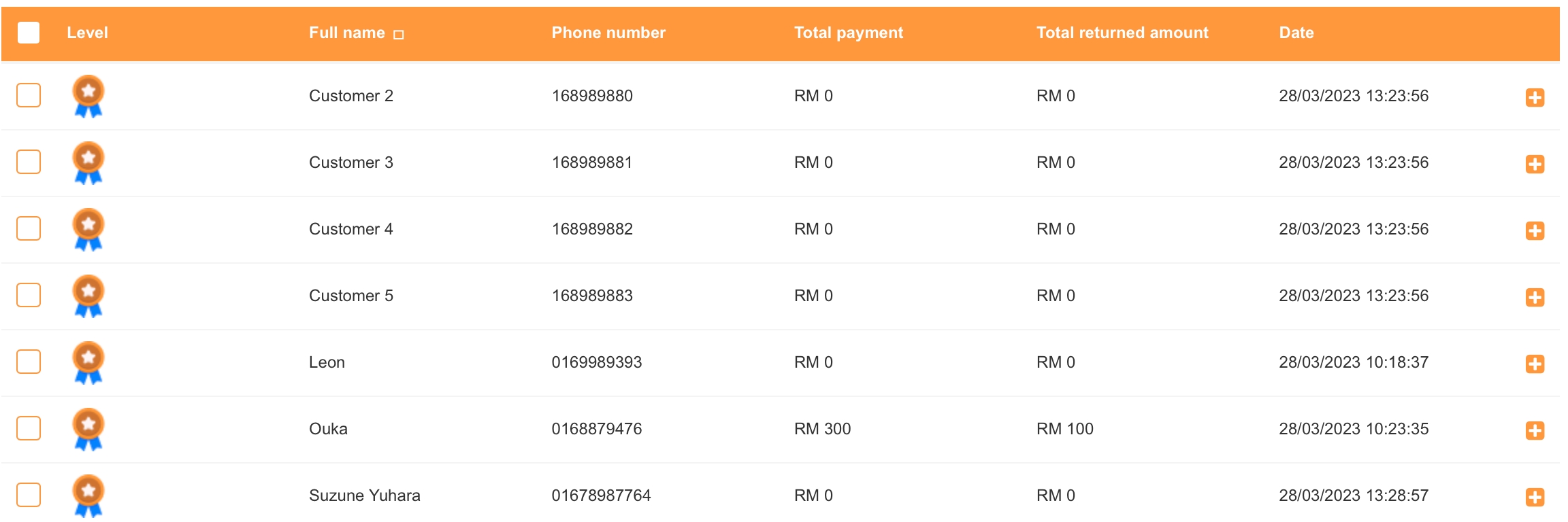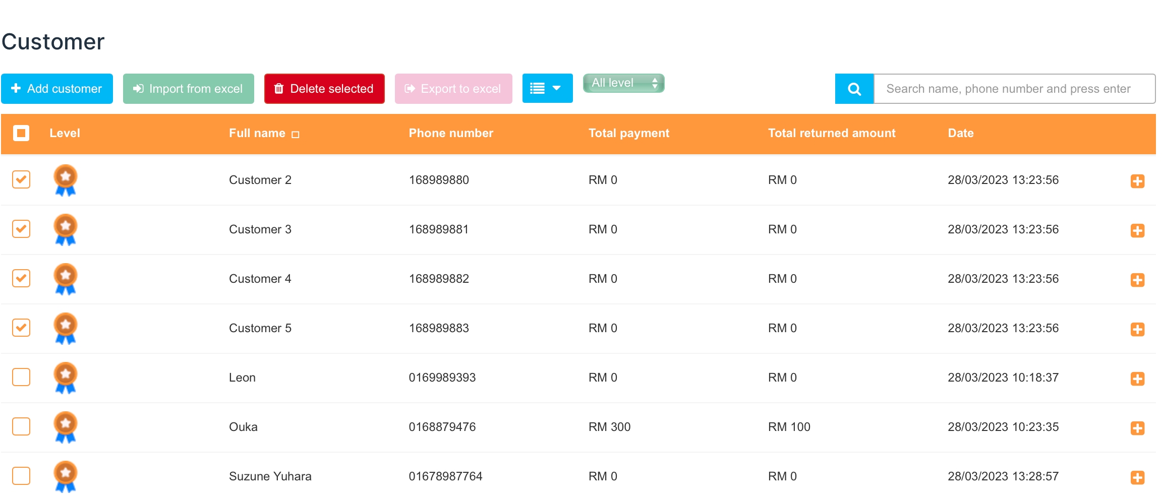 Anda boleh tanda kotak semak bagi memilih beberapa pelanggan untuk melaksanakan tindakan padam dalam satu masa.