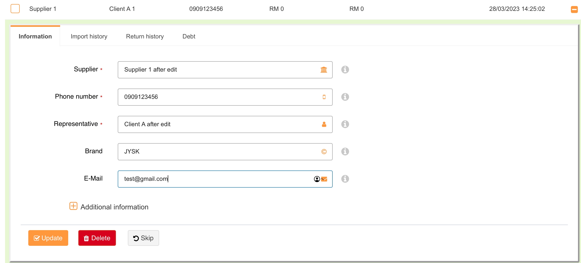 Langkah 2: Sunting/kemaskini maklumat pembekal
