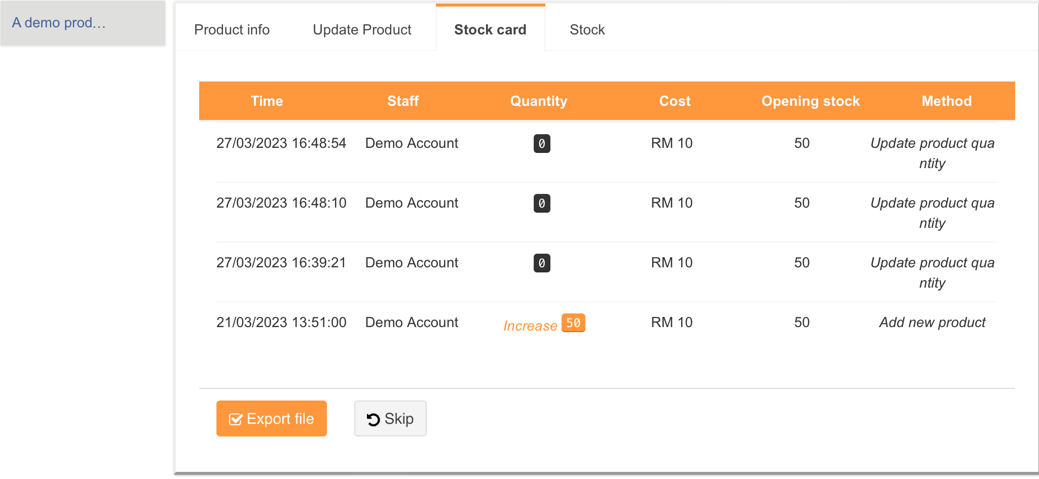 Kad stok membolehkan anda untuk memantau perubahan stok yang dilakukan pada produk ini. Ia memberitahu anda dengan: