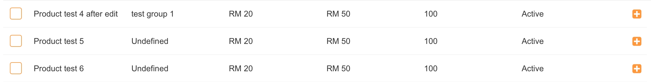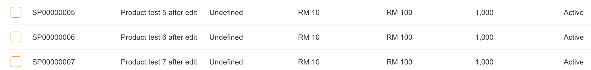 Anda boleh memilih produk untuk disunting dengan menekan pada baris yang mengandungi produk tersebut.