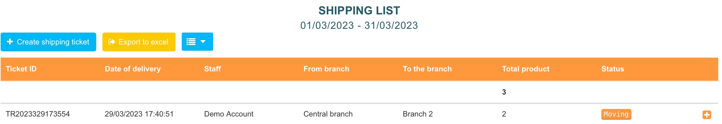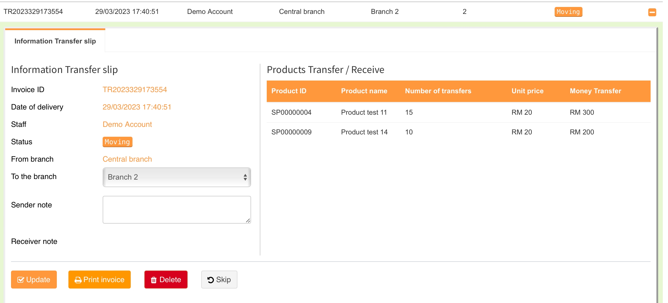 Pengurusan CawanganPindahkan produk dengan mencipta tiket penghantaran
