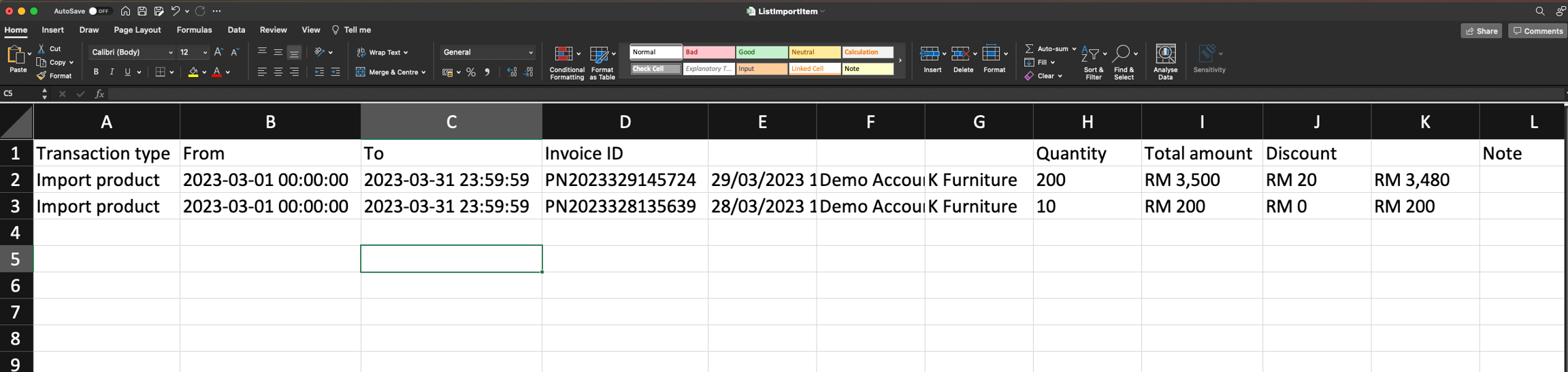 Eksport Senarai Invois Import