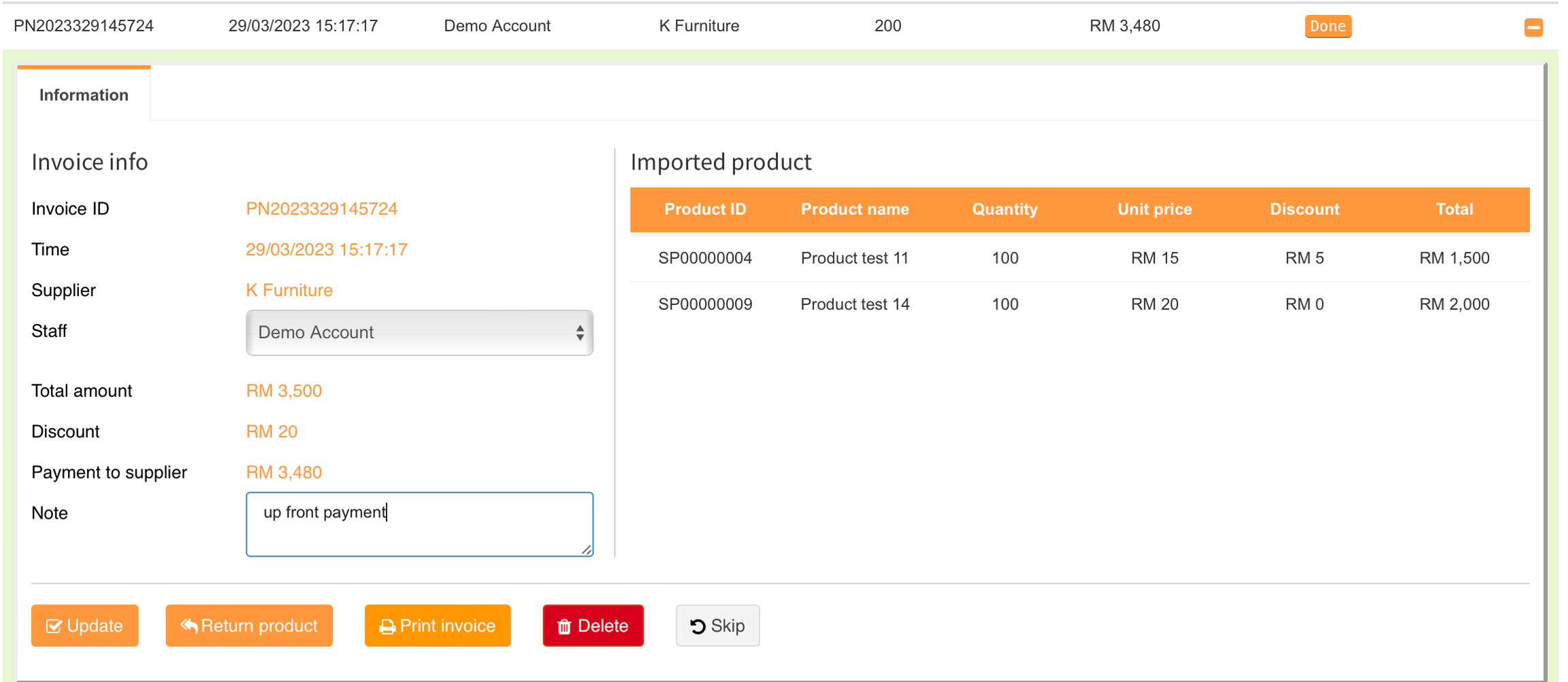 Langkah 1: Tekan pada baris yang mengandungi invois
