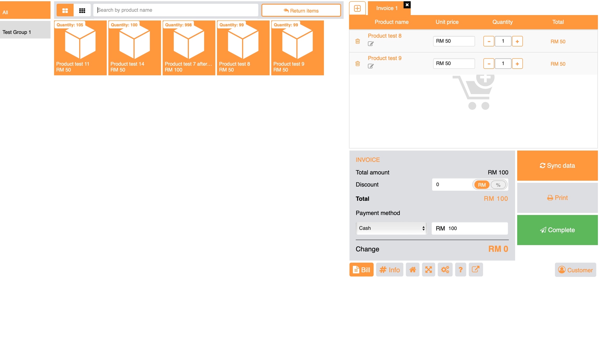 Anda boleh navigasi ke halaman Selling screen/Order processing dengan menekan butang POS di bahagian atas menu, di atas butang Dashboard.