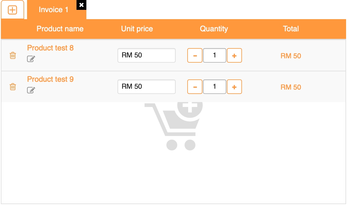 Jika anda membuat kesalahan, kemudian hanya tekan butang Remove (simbol tong sampah) untuk mengeluarkan produk yang dipilih dari senarai pembelian.