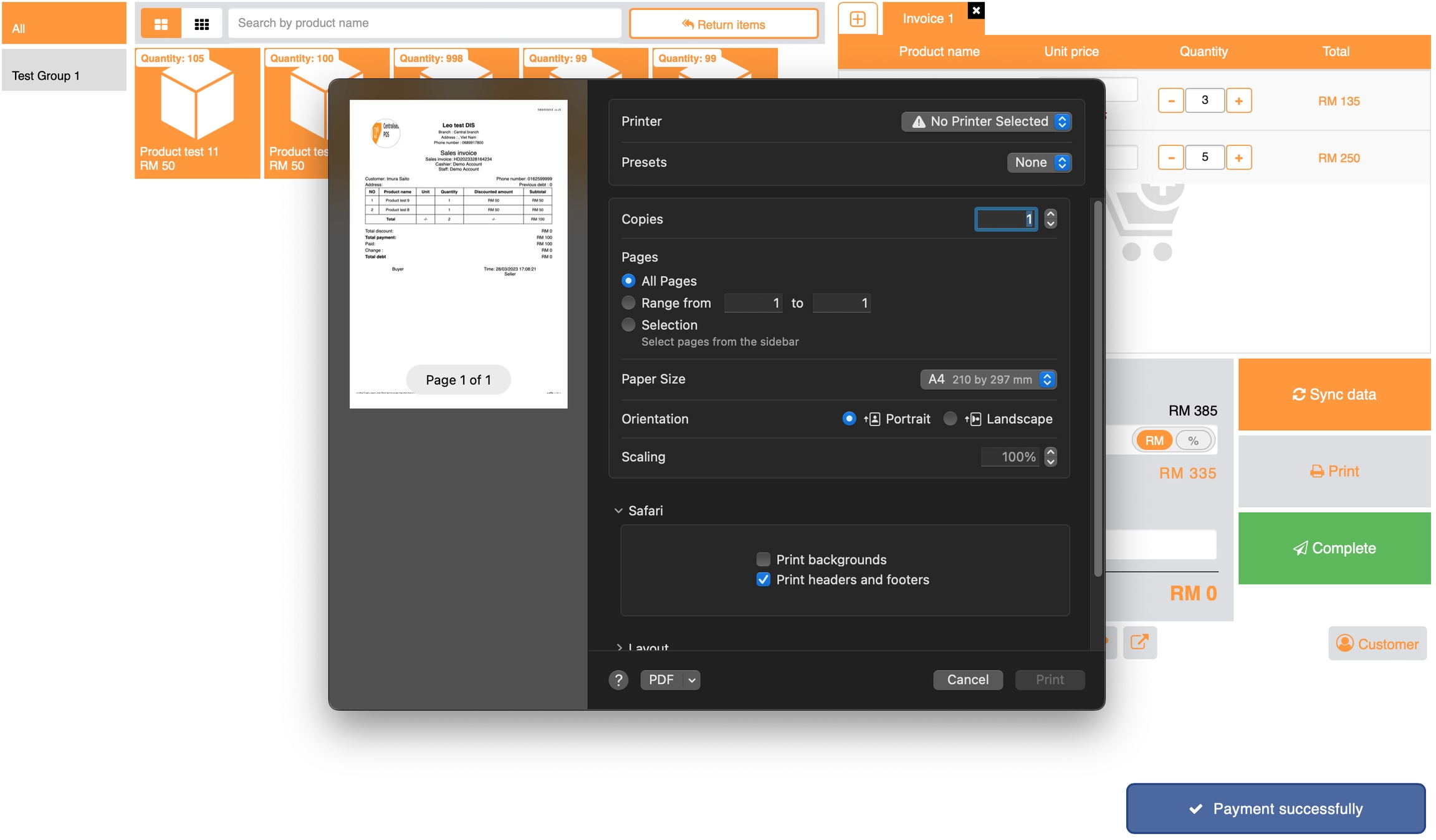 Berjaya mencipta pesanan akan membolehkan sistem membuat invois yang boleh dicetak secara automatik. Anda boleh mencetaknya pada bil fizikal.