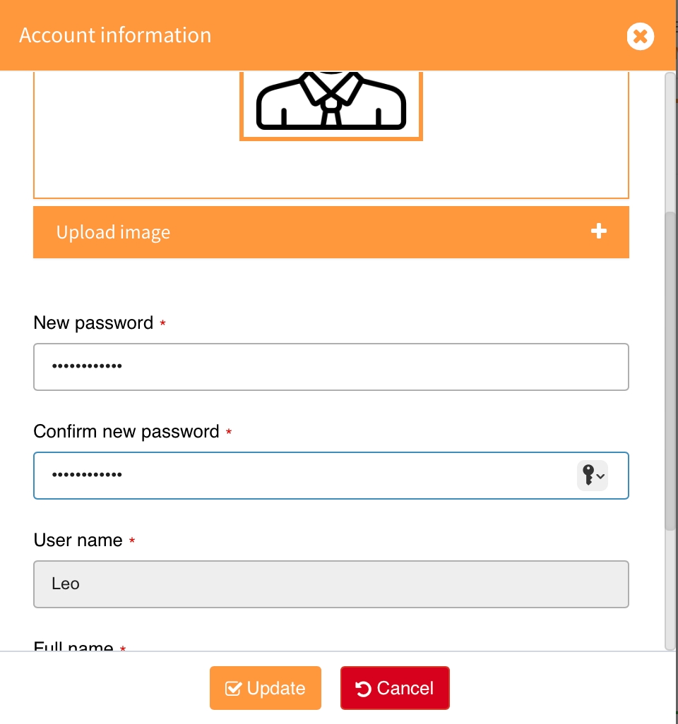 Anda boleh masukkan dan sahkan kata laluan baharu anda ke tab Account information.