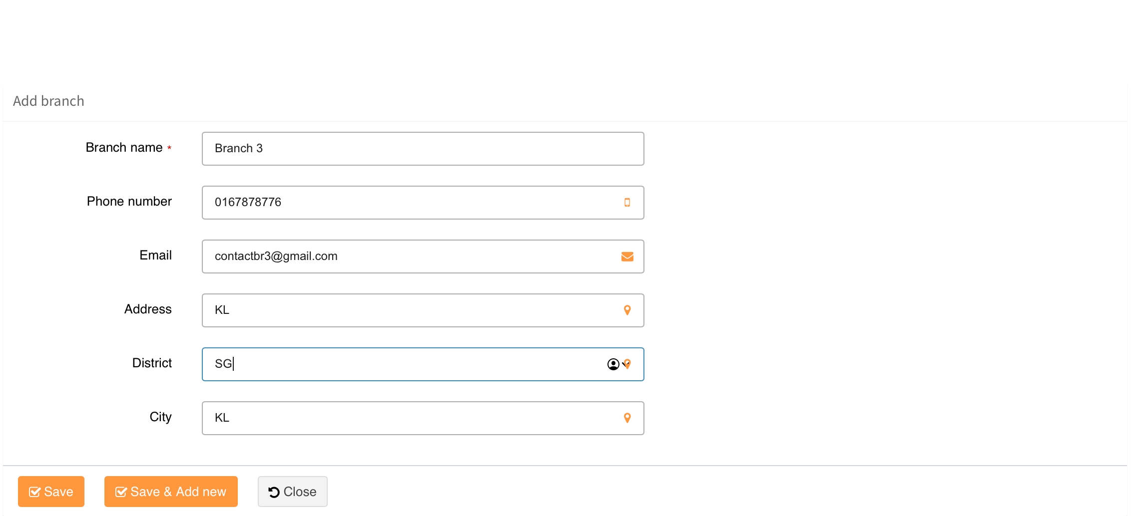 Anda boleh tekan butang Save & add new untuk simpan data baharu ke dalam sistem dan teruskan dengan proses penambahan cawangan ATAU
