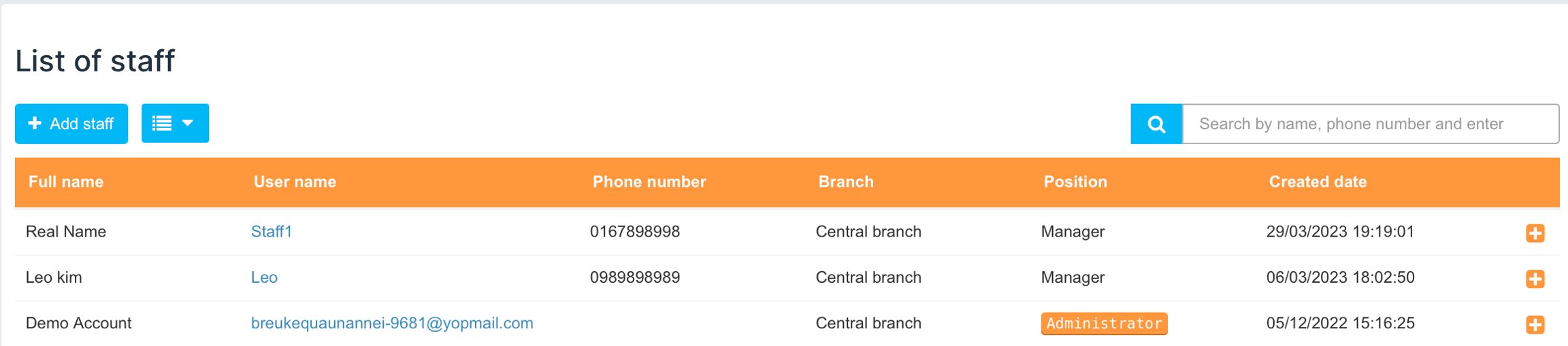 Langkah 1: Tekan butang Add staff