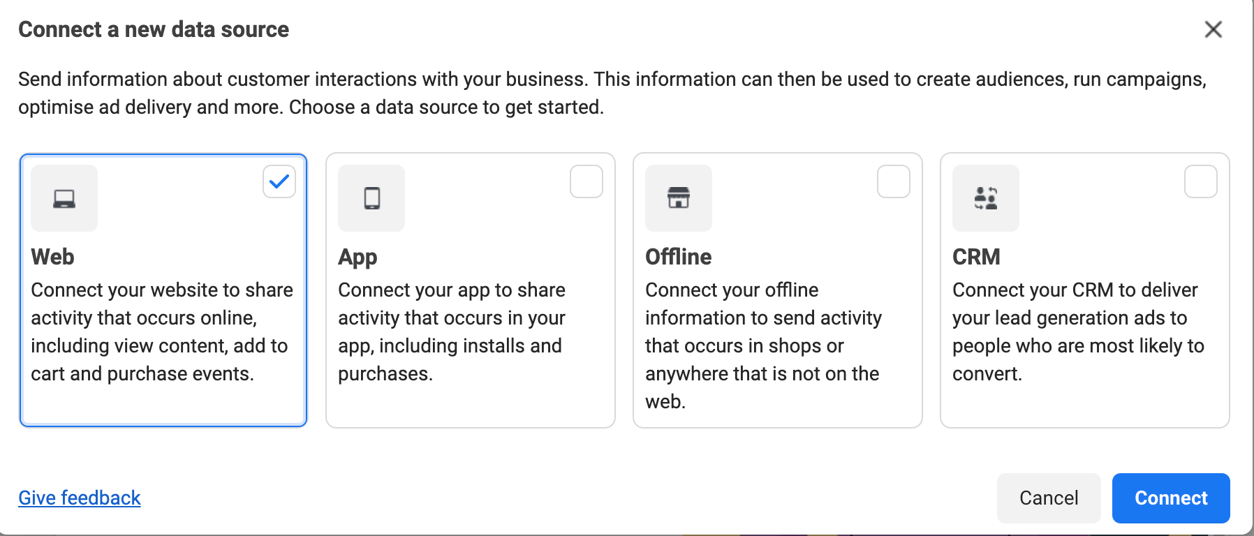 Langkah 2: Pilih Connect a new data source, tandakan pilihan Web dan tekan Connect.