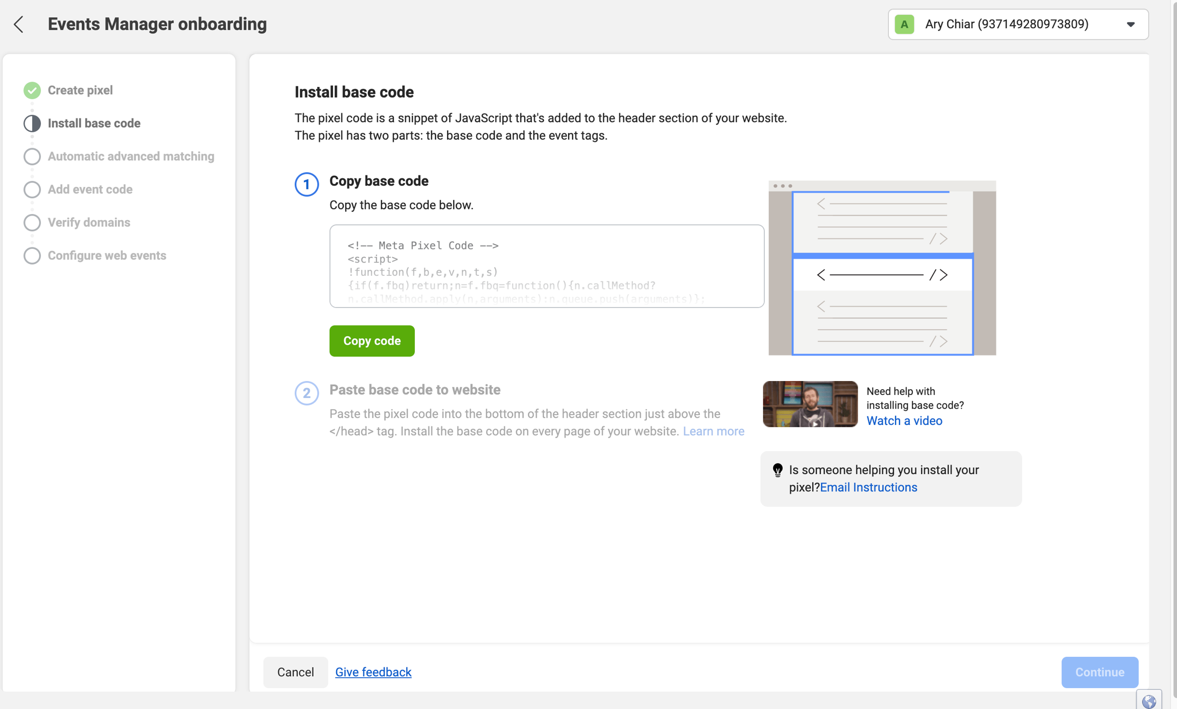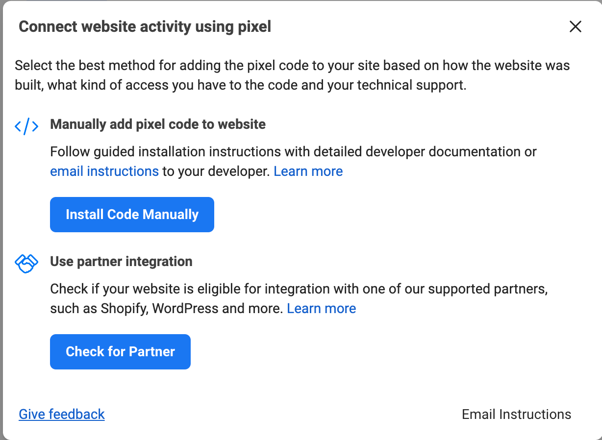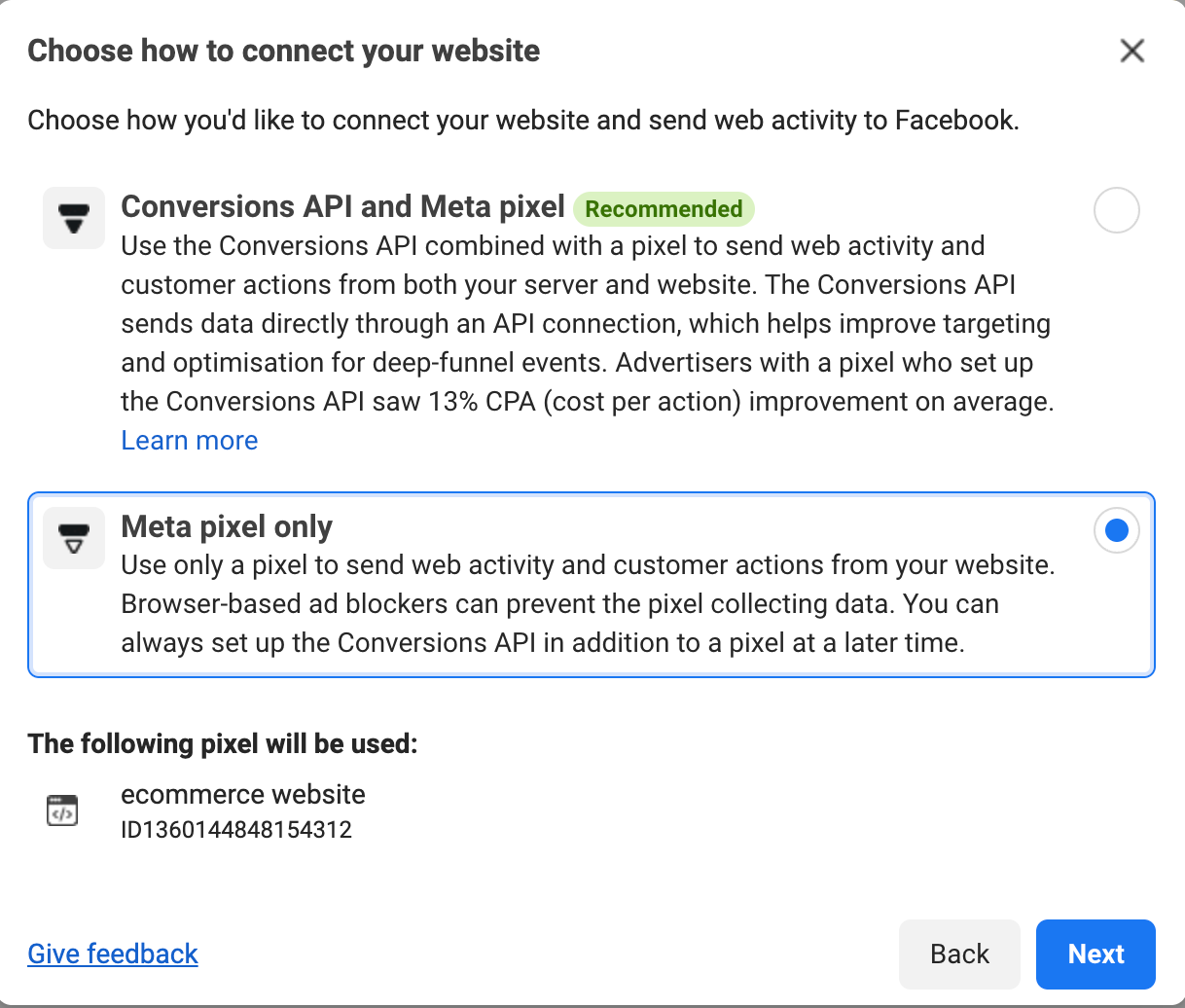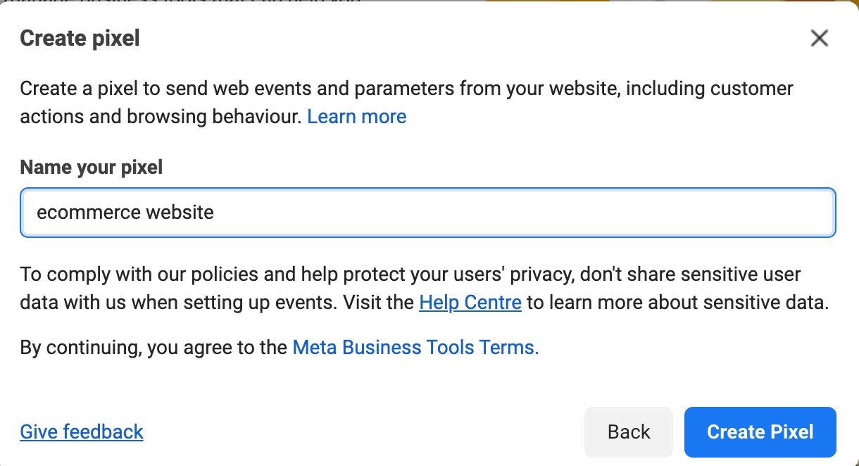 Langkah 3: Ikut arahan pada platform Meta dan cipta pixel.
